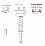 I used a 3/16" x 2" flat steel bar to be used between the original shock mounts and the mount for the top of the struts...