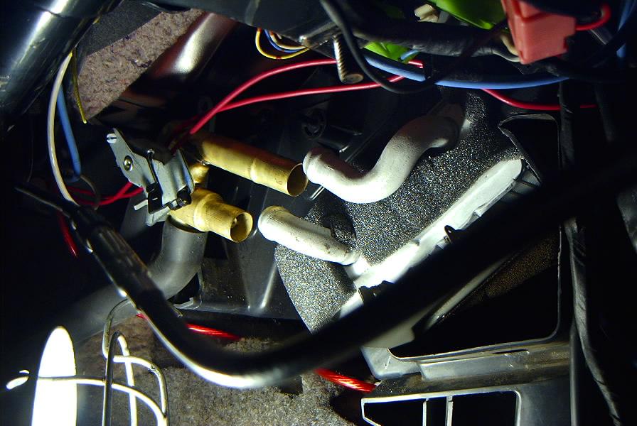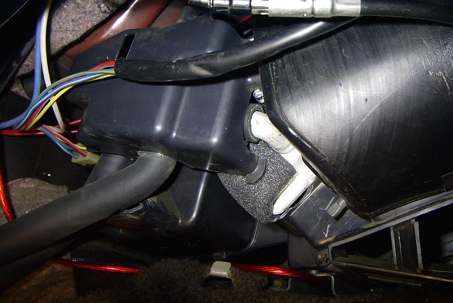 5. Cut out a side access hole around the heater core. Because of the cramped area, and thickness of the plastic, following SubySwampers lead, I used a soldering iron to perforate the plastic around the core.